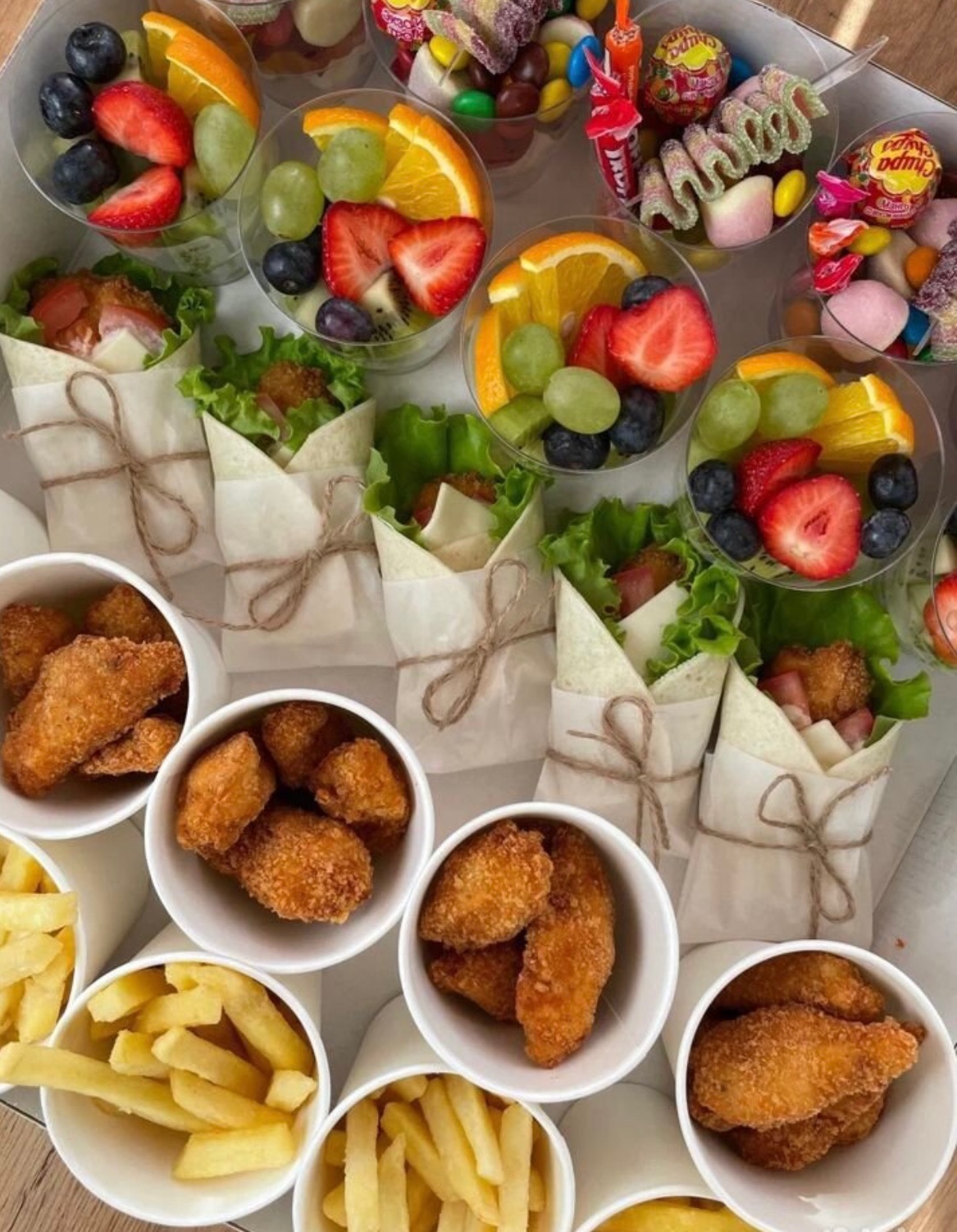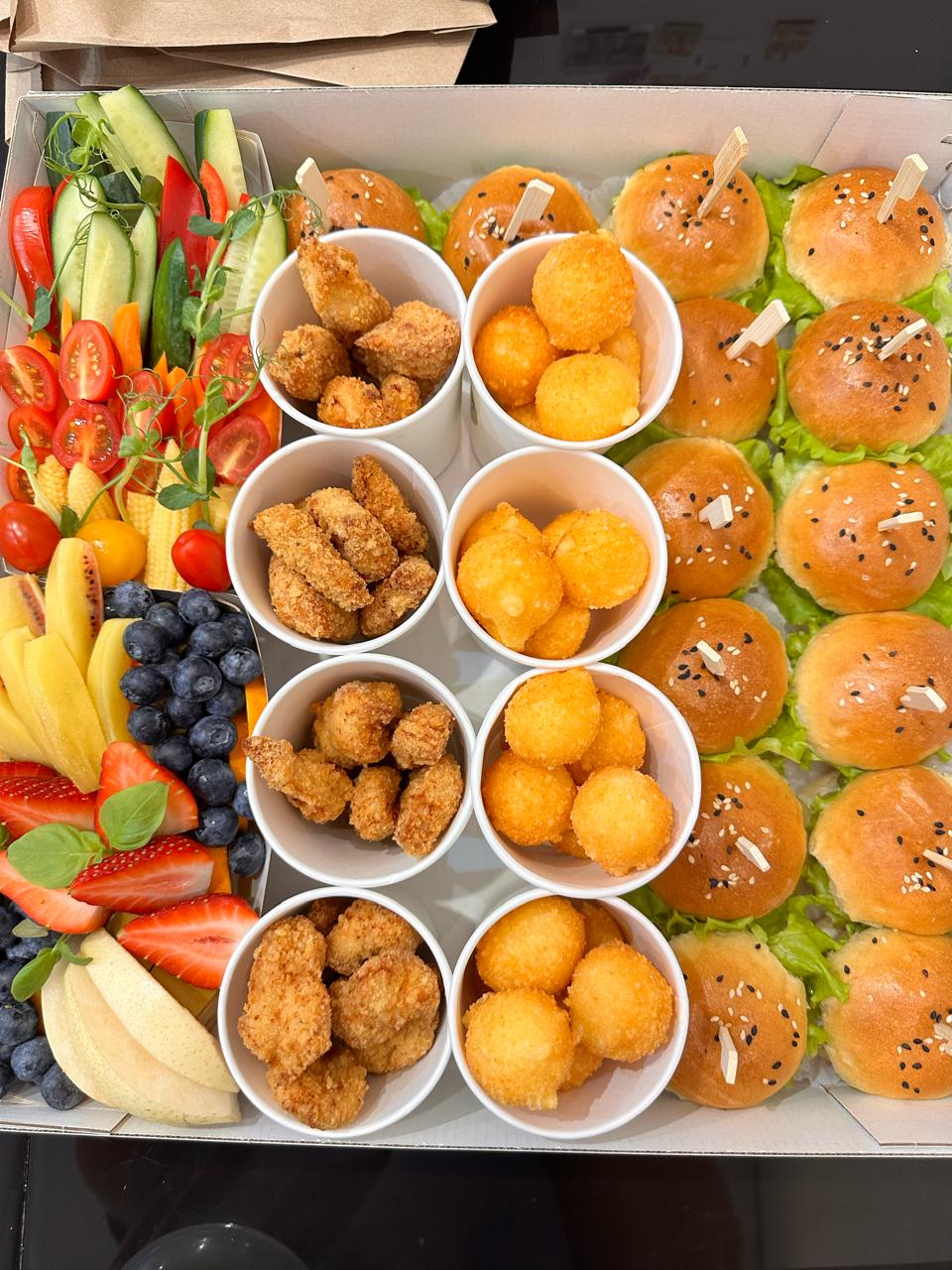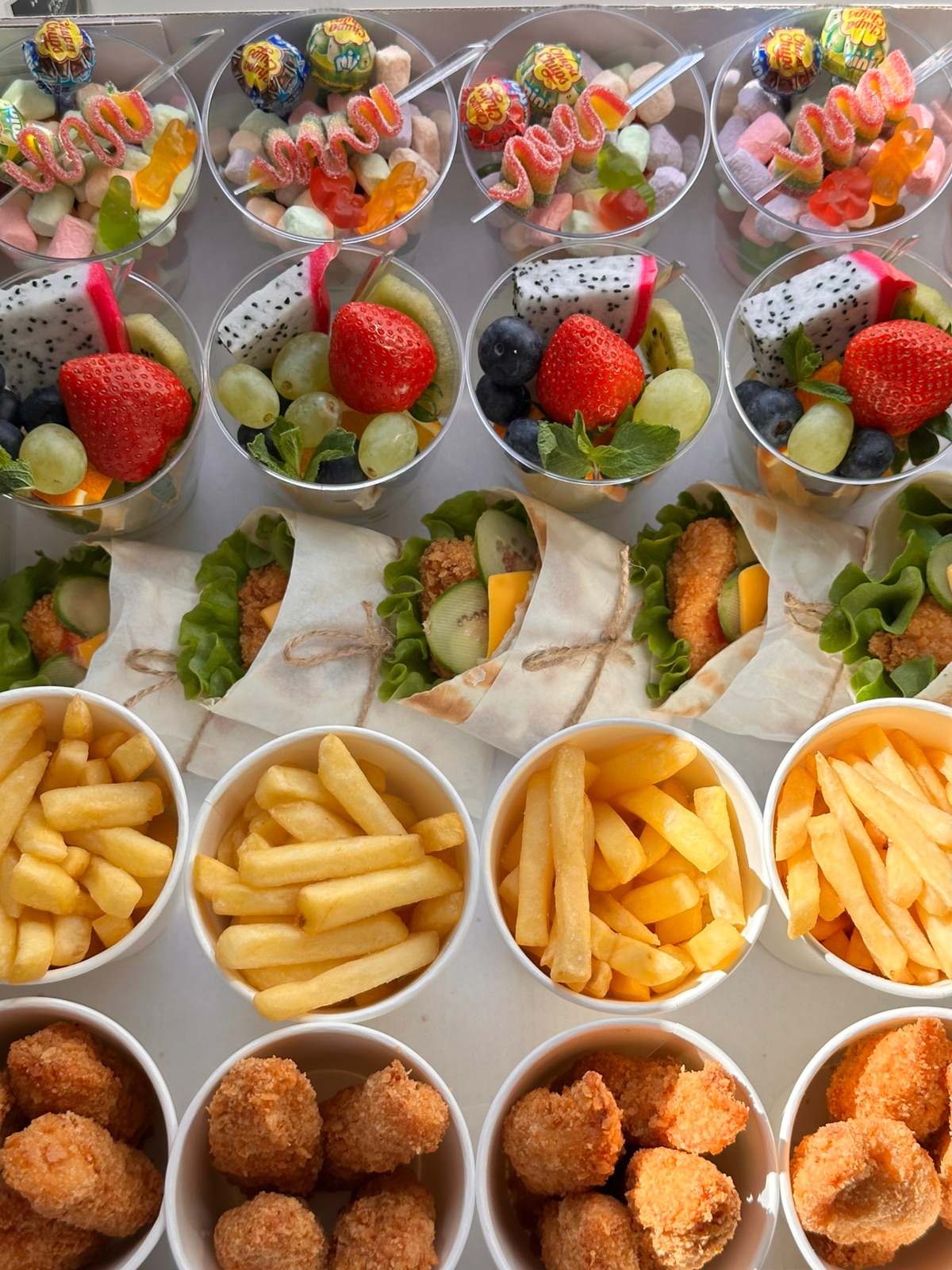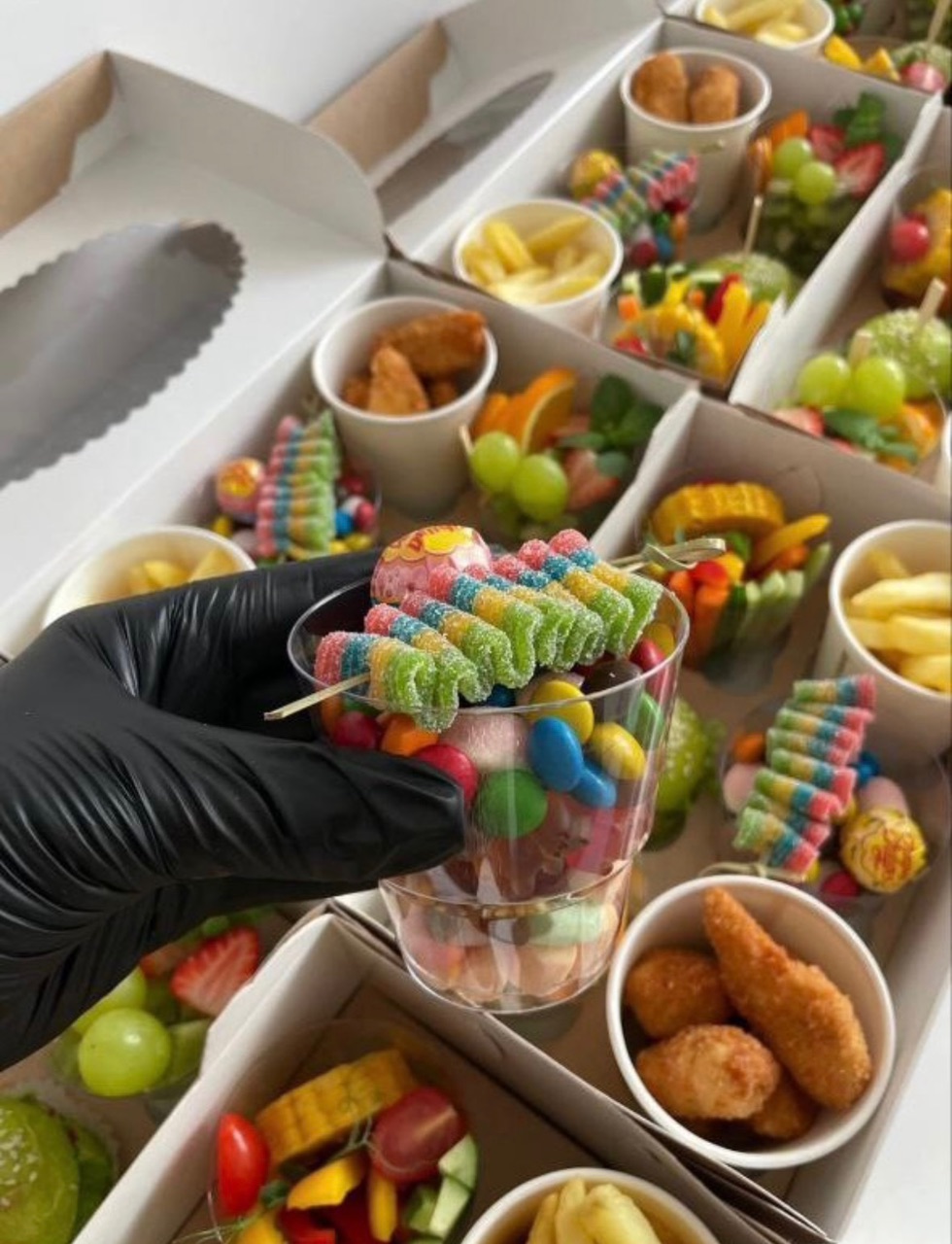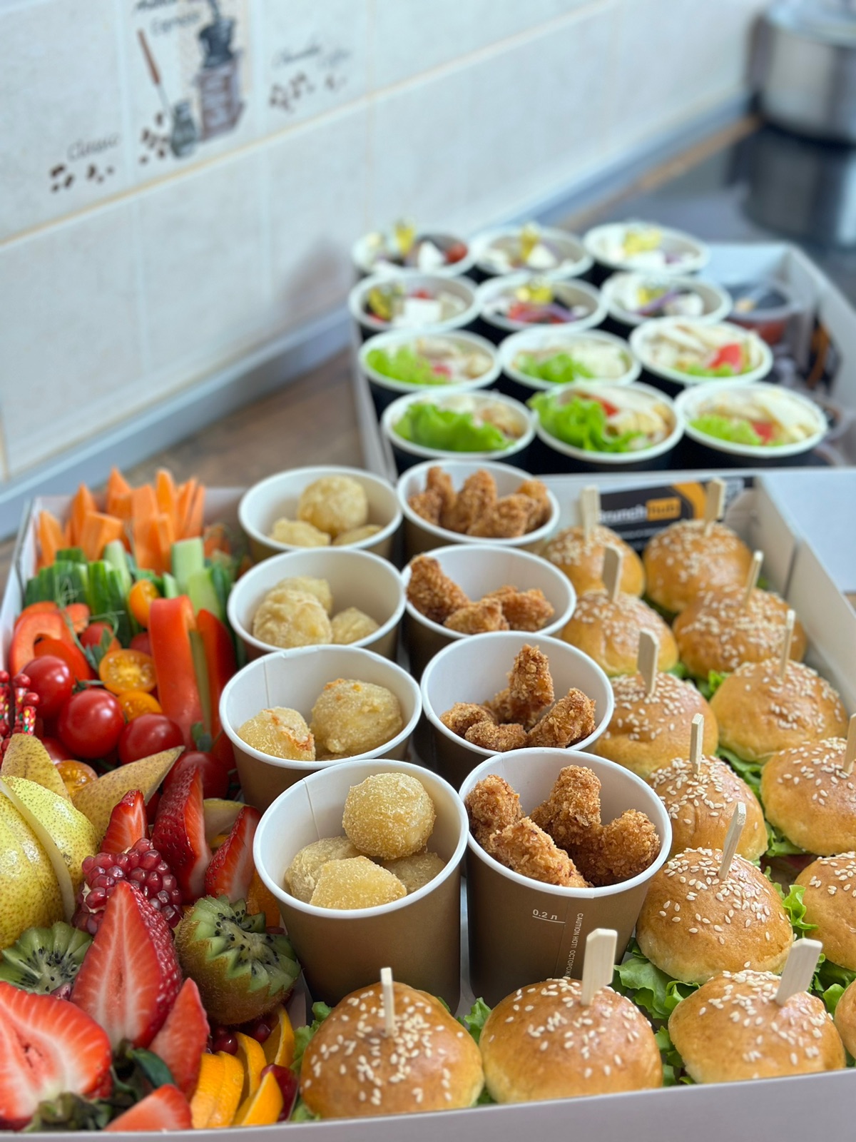 Брускетта с говядиной - 6 шт; Брускетта с форелью и огурчиком -6 шт; Канапе салями с сыром и перлине - 6 шт; Канапе огурчик с форелью и оливкой -7 шт; Кростини с аргентинскими креветками- 5 шт; Кростини с говядиной- 5 шт; Кростини с камамбером и сезонной ягодой или фруктом - 5 шт; Кростини с говядиной, вялеными томатами и горчичкой -5 шт; Кростини с карбонадом и черри- 5 шт; Камамбер с сезонной ягодой или фруктом- 8 шт; Твердый сыр с виноградом - 6 шт; Мини сендвич с форелью и огурчиком - 6 шт; Канапе с с/в шеей, черри и моцареллой -6 шт; Тарталетки с форелью -6 шт.