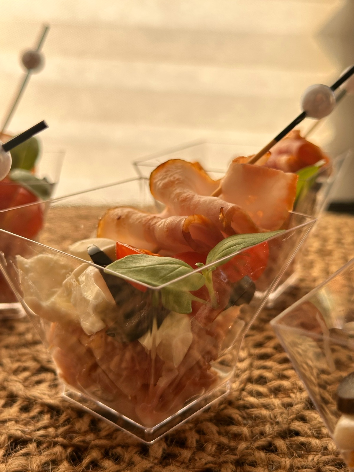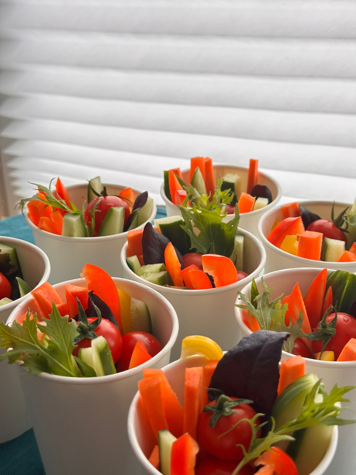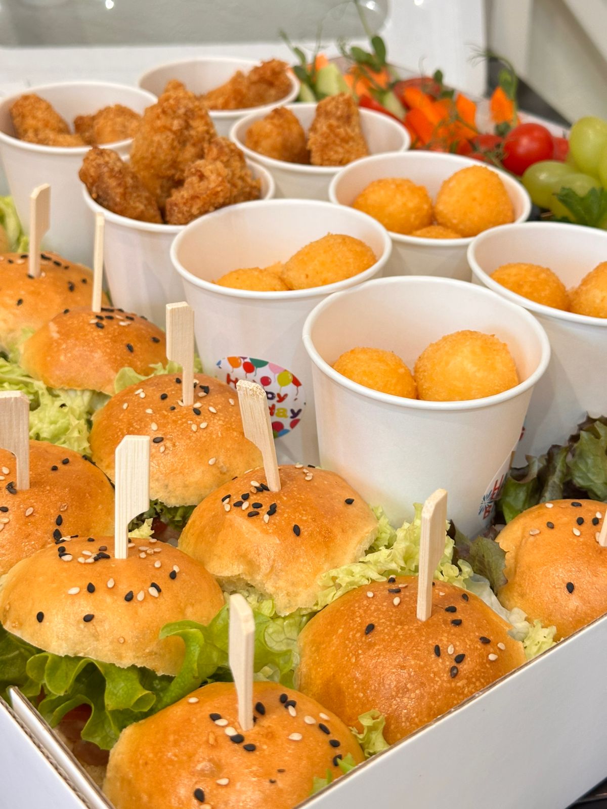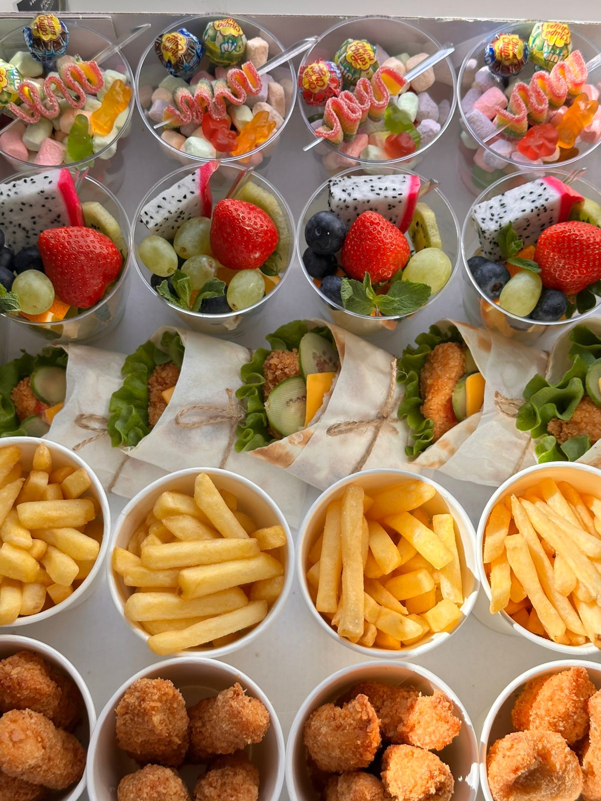 Брускетта с говядиной - 6 шт; Брускетта с форелью и огурчиком -6 шт; Канапе салями с сыром и перлине - 6 шт; Канапе огурчик с форелью и оливкой -7 шт; Кростини с аргентинскими креветками- 5 шт; Кростини с говядиной- 5 шт; Кростини с камамбером и сезонной ягодой или фруктом - 5 шт; Кростини с говядиной, вялеными томатами и горчичкой -5 шт; Кростини с карбонадом и черри- 5 шт; Камамбер с сезонной ягодой или фруктом- 8 шт; Твердый сыр с виноградом - 6 шт; Мини сендвич с форелью и огурчиком - 6 шт; Канапе с с/в шеей, черри и моцареллой -6 шт; Тарталетки с форелью -6 шт.