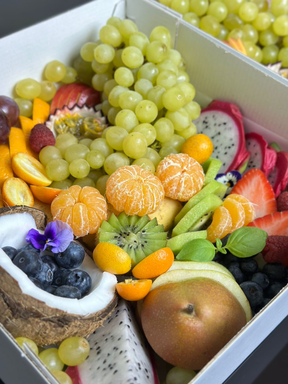 Нарядный, большой набор 30*30 разнообразных закусок: Шесть видов сыра, вес 950 гр Пять видов мясных деликатесов, вес 760 гр Сезонные ягоды и фрукты Помидорчики черри Снеки Орехи Соус Шпажки на компанию