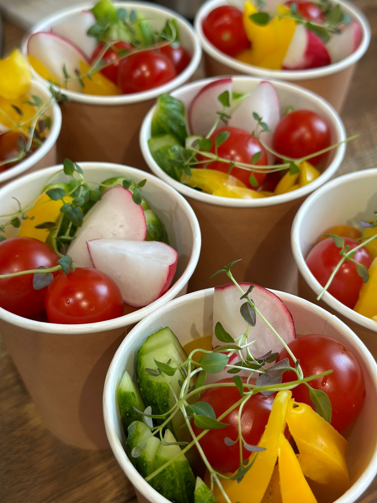Все очень вкусно, салаты супер. Всех удивил вариант подачи масла в салате. Все продумано до мелочей. Молодцы!